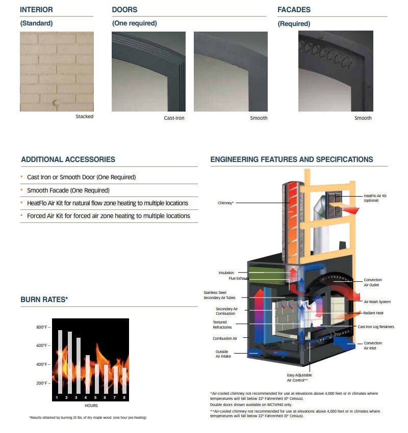- HeatFlo air kit and/or thermostatically controlled forced air kit available (three maximum outlets)